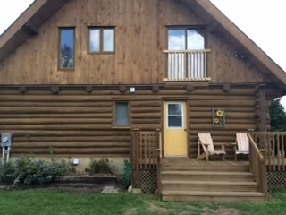 Today following all of the repairs to the logs and the gable ends, the blasting and re-staining of the house and garage we have a home that is like brand new. We also know that as we put it for sale that the new owner will have nothing to worry about regarding the structure of the house, won’t need to concern themselves with staining the house for up to 20 years and will have a 3 year guarantee on all of Timber Wright’s work.